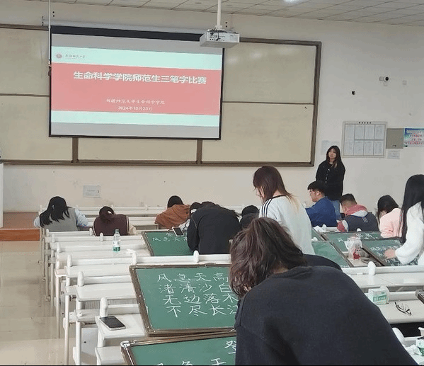 成功举办了师范生三笔字比赛。三笔字作为师范生的基本技能,对传承文化、提升综合素质意义重大。此次比赛为师范生搭建了展示与交流平台,有力推动其专业成长。赛前,生物科学系系主任张瑞老师积极动员师范班级学生,学生们踊跃报名。比赛结束后,共收到钢笔字35份、毛笔字8份、粉笔字33份。经学院评委严格评分筛选,钢笔字、毛笔字、粉笔字分别决出了一、二、三等奖若干名,获奖名单如下:钢笔字一等奖4名、二等奖8名、三等奖12名;毛笔字一等奖1名、二等奖2名、三等奖3名、优秀奖1名;粉笔字一等奖5名、二等奖11名、三等奖11名。
