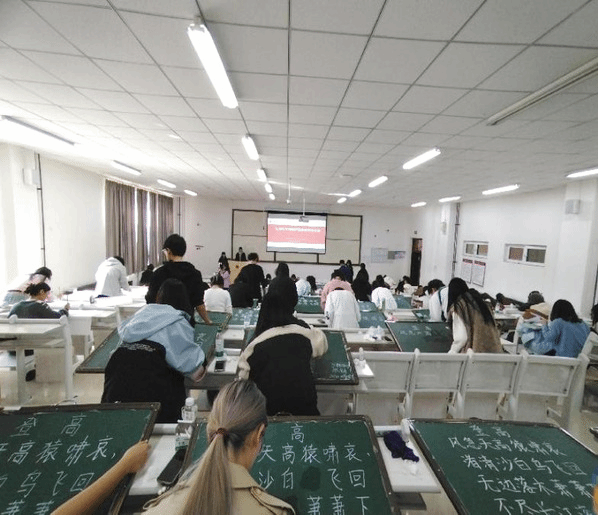 选手们在黑板上书写时,展现出了良好的空间布局能力。能够合理安排字的大小、间距和行距,使整个黑板的书写看起来整洁、美观。同时,在书写过程中,不少选手能够根据诗句的节奏和情感,通过粉笔字的笔画粗细、轻重变化来表现诗歌的韵律和意境。