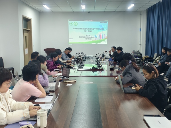 10月30日学院邀请新疆农业科学院植物保护研究所所长、自治区“天山英才”领军人才获得者郭文超研究员、自治区标准化研究院农业与食品标准化研究所副所长李楠、方圆专利资深代理师王悦面向全校开展线上线下同步专题讲座。郭文超介绍了自治区科技成果奖项类型、申报流程和评审过程,并分享了他对科技成果申报奖励工作的深刻见解。李楠讲解了地方标准立项评估的必要性、流程、主要内容、评估指标体系以及常见问题。王悦就专利申请流程、技术交底书撰写等专利申报知识进行了培训。