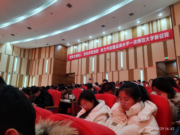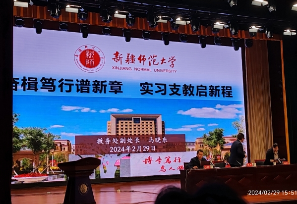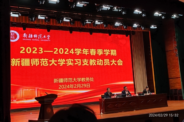 为保障2024年春季学期师范生实习支教工作顺利开展,我校于2月29日下午在温泉校区昆仑讲堂召开师范生实习支教动员大会。校党委常委、副校长陈彤出席会议,教务处处长路俊哲,教育科学学院、外国语学院等学院党委书记、教学副院长、师生代表及实习支教带队教师参加会议,其余支教师生通过线上参会。会议由教务处副处长马晓东主持。