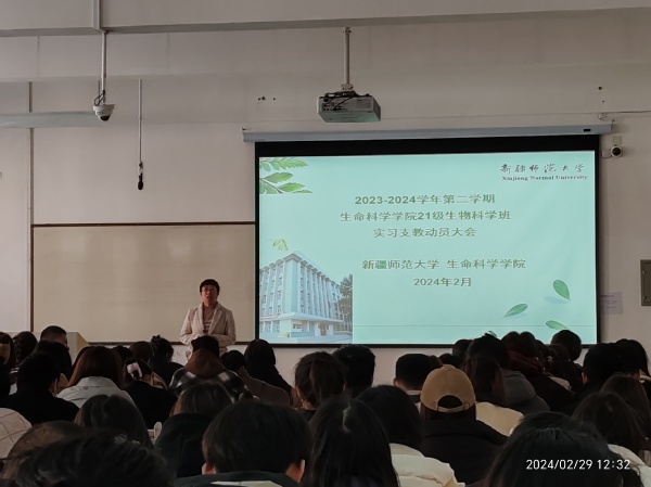 通过四次有针对性的培训,提高了师范生教学技能,信息技术应用能力,师德养成及班级管理能力。学院实习动员大会上,2023—2024 学年第二学期,需要实习的159名全体同学,部分远程指导老师及2021级辅导员参加了此次大会。生物科学系主任张瑞老师主持会议。