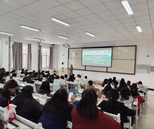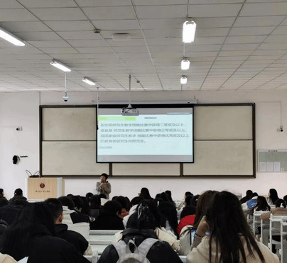 的2020级生物科学系与2022级小学科学系。接着张瑞教授为大家讲解了本次考核的主要内容,她从“品德师德、学业成绩、教育实践、专业能力”四个方面出发分别阐述了本次考核的过程性要求,旨在表达学校及学院对师范生的基本素养期望。