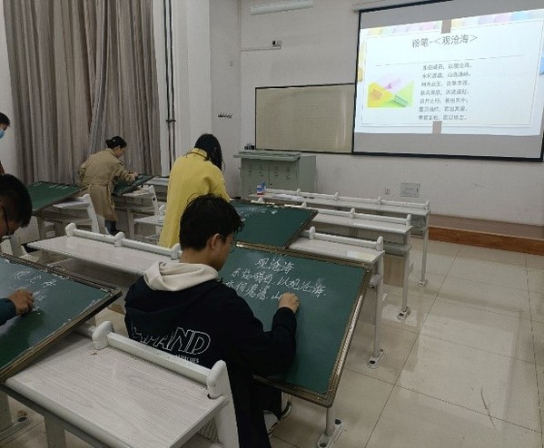 为全面贯彻国家语言文字法律法规、方针政策和语言文字规范标准,提高师生的书写规范,加强师生的语言文字基本功训练,学院于4月19日开展了生物科学专业“三笔字”比赛。三笔字包括钢笔字,毛笔字,粉笔字。参赛选手通过现场书写展示,评委现场打分的方式来开展比赛。