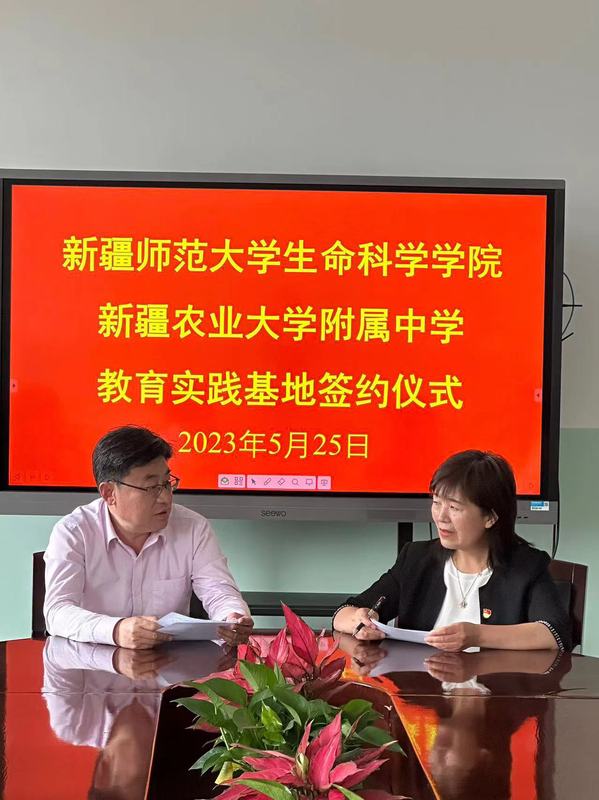 与新疆农业大学附属中学签署教育实习实践基地协议书。