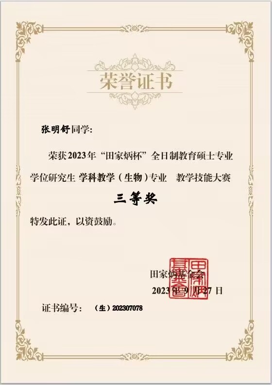张瑞教授带领入围决赛的三名选手赴鲁东大学参加全国决赛,最终张明舒同学凭借出色表现荣获全国三等奖,刘路与李晓清同学荣获优秀教学设计奖。