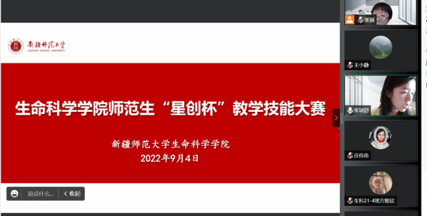为进一步加强师范生教学技能,提升师范生综合素养和核心竞争力,结合学校首届“星创杯”智慧教学技能大赛工作安排,为保障晋级学校参赛的选手各项教学材料准备得更充分,发挥的更全面,学院于9月4日举办了师范生“星创杯”智慧教学技能大赛院级遴选活动。本次大赛采用线上会议方式开展,大赛由生物科学系主任张瑞老师主持,学院资深教师庄伟伟、吕海英、努尔古丽、王小静参与评审工作。