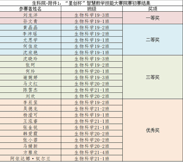 师范生“星创杯”教学技能大赛院级初赛获奖名单