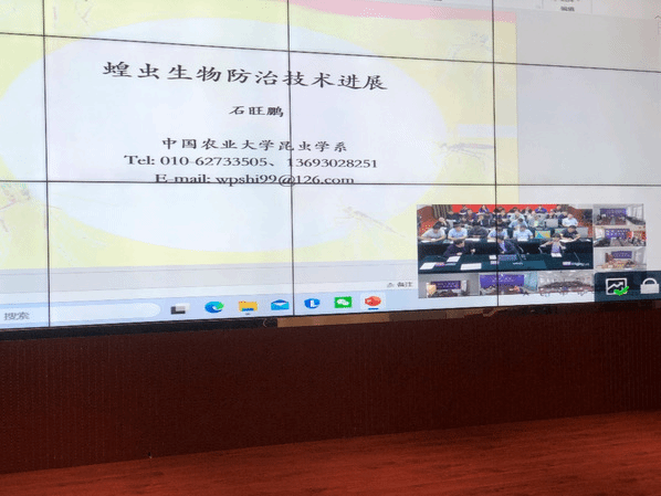 中亚区域跨境有害生物联合控制国际研究中心和伊犁州林业和草原局州治蝗灭鼠指挥中心的邀请,中国农业大学植保学院昆虫学系教授、博士生导师石旺鹏莅临州治蝗灭鼠指挥中心,为当地治蝗工作人员做了题为“蝗虫生物防治技术进展”的学术报告。报告会由伊犁州林草局副局长秦岭主持,采用线下线上结合的形式召开,参加人员包括州治蝗办工作人员以及霍城县、巩留县、新源县、尼勒克县、察布查尔县、伊宁县和特克斯县一线治蝗人员。