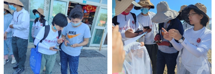 2022年6月17-21日塔城市现场技术培训(左:教阿娜尔如何使用普查App查阅路线和导航;右:教蝗虫种类识别及App数据录入)